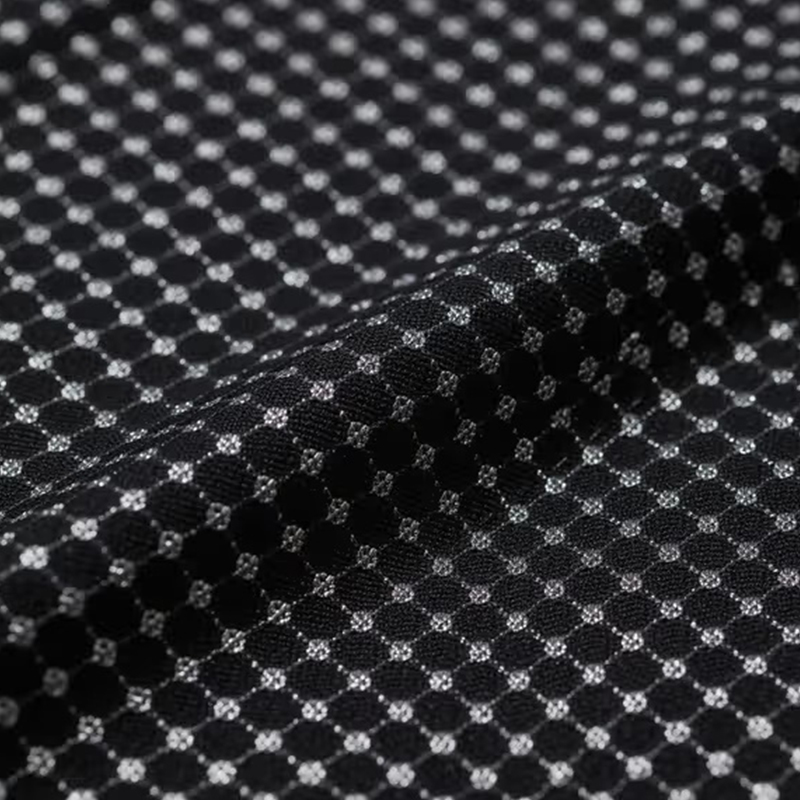 Dot Mesh Birdseye Cloth har en unik dot mesh-hullstruktur. Sammenlignet med tradisjonell fugleperspektiv-duk, er hullene i dot mesh-duken finere og mer regelmessige. Denne innovative designen forbedrer pusteevnen og svettefunksjonen til kluten betydelig, noe som gjør luftsirkulasjonen jevnere, og svetten fordamper raskt, og holder brukeren tørr og komfortabel. Enten i anstrengende trening eller i varmt vær, kan dot mesh fugleklut effektivt forhindre svetteoppbevaring og gi en ideell komfortabel opplevelse. På grunn av pusteevnen, fuktighetsabsorberingen og svetteytelsen, er dot mesh fugleøyeduk svært egnet for produksjon av sportsklær, sommerklær og daglige fritidsklær. Den lette teksturen og det behagelige preget av dot mesh birdseye-duk gjør den til et ideelt valg for langvarig bruk, egnet for sportsentusiaster og folk som elsker utendørsaktiviteter. Enten det er sportsutstyr som løpeklær, yogabukser, treningsklær eller lette klær som sommer T-skjorter og shorts, kan dot mesh birdseye stoff gi ultimat komfort og unngå ubehag forårsaket av langvarig trening eller bruk i høye temperaturer.
