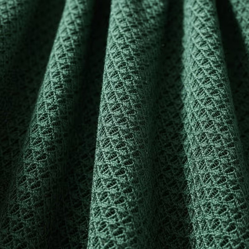 Polyester elastisk sammenvevd fugleøye-stoff er et stoff designet for å møte behovene til sport, sommerklær, utendørsutstyr og fritidsklær. Ved å bruke en unik sammenvevd veveprosess opprettholder dette stoffet pusteevnen og fukttransporterende egenskapene til tradisjonelt fugleøyestoff, samtidig som det forbedrer stoffets styrke og holdbarhet. Overflaten er sammensatt av bittesmå hull, som ikke bare gir en unik visuell effekt til stoffet, men også forbedrer pusteevnen, slik at svetten kan slippes ut raskt, og holder brukeren tørr og komfortabel. Enten det er høyintensivt forbruk under sport eller daglig bruk i varmt vær, kan det gi komfort hele dagen.